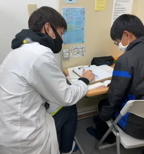 先生1人につき1~3名を担当します。同時に担当する生徒の学年や教科はバラバラで、一人ひとりを個別に教える授業スタイルです。