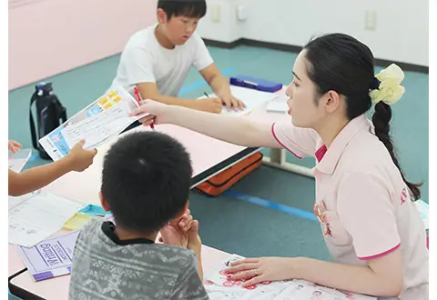 | 研修制度 | 研修期間は約1〜2ヶ月。デビューに向けてしっかり準備を致します。 ◆研修の流れ クラス別のマニュアルを使用して業務などの基礎を学び、 先輩講師のサポートとして授業に参加します。 ↓ 勤務教室にて業務の引き継ぎ後、先生デビュー! デビュー後も新人向け研修や勉強会でスキルアップ♪ 困った事があれば責任者や先輩講師が定期的にサポートします◎ |