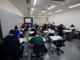 | 教える生徒 | 小・中・高校生への個別指導です。3人掛けの席の中央に座り、両サイドの生徒を交互に指導して頂きます。 |