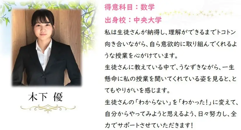 勉強を教えるのが好きな方、勉強が得意でない子にも優しく接することができる方、生徒さんが成長していく姿に喜びを感じられる方をお待ちしております。